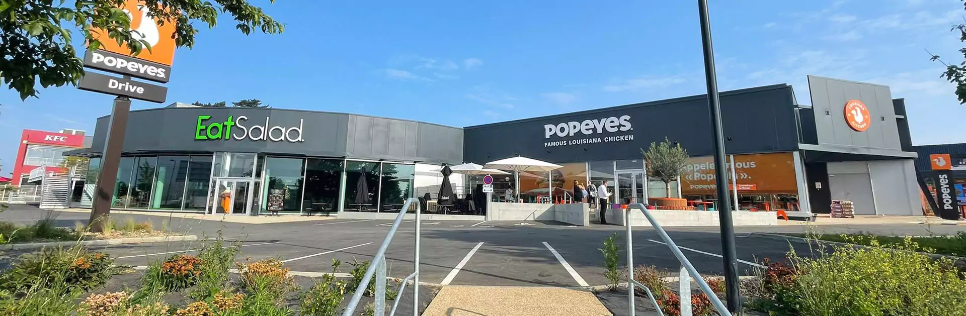 • une restructuration d’un bâtiment à usage de concession automobile en un pôle de restauration à l’architecture soignée